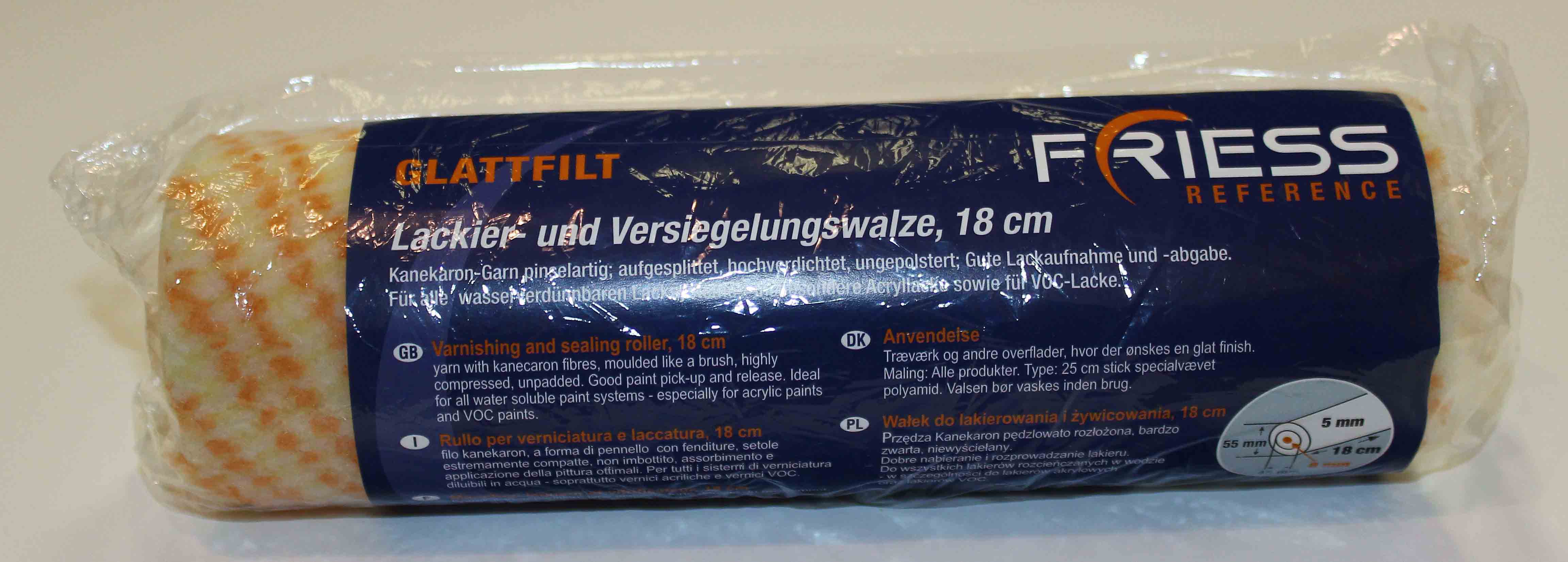 Lackierwalze für Acryllacke: Lackierwalze für qualitativ anspruchsvolle Applikation von wasserverdünnbaren Acryllacken auf glatten Untergründen. Extrem voluminös, überdurchschnittliche Lackaufnahme, ergibt saubere, gleichmäßige Oberfläche.