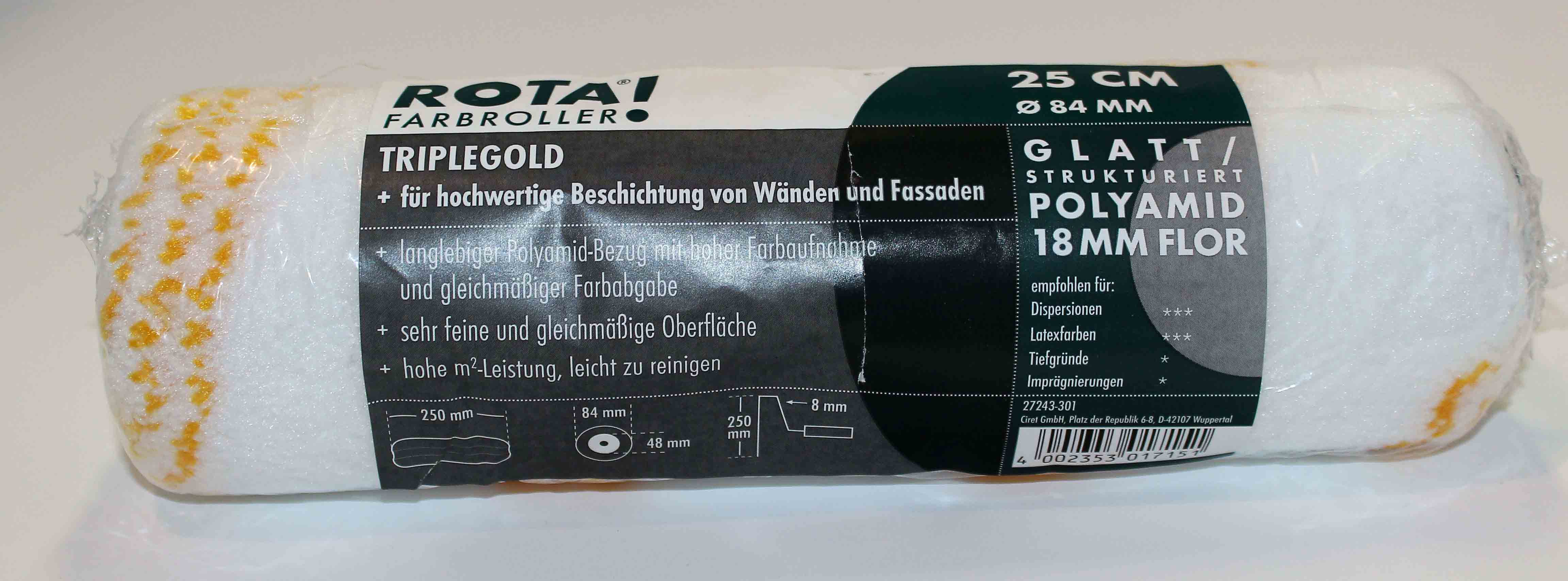 Goldfadenwalze TripleGold ungepolstert 25 cm Ø 84 mm