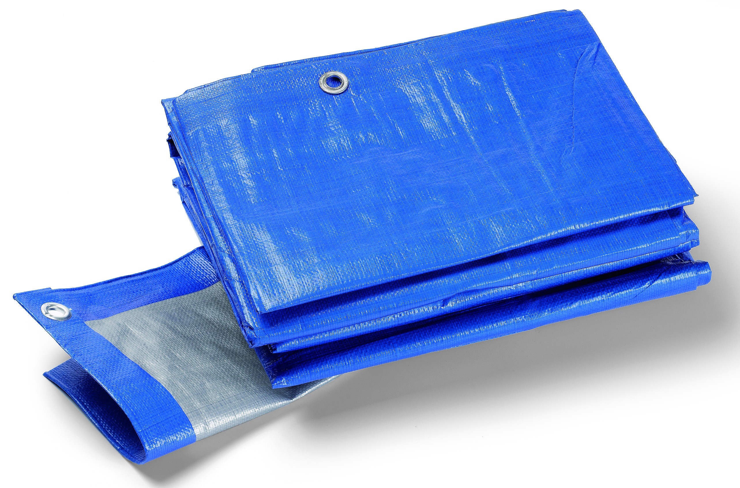 Schutzplane blau/grau, 180 g/m2, rundum gesäumt, Aluminiumösen im Abstand von 1 m