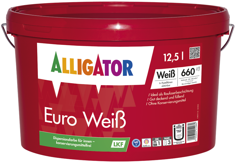 Stumpfmatte Dispersions-Innenfarbe der Deckkraftklasse 1 sowie Nassabriebklasse 3. Ideal für die Erst- und Wiederholungsbeschichtung auf Raufasertapeten.