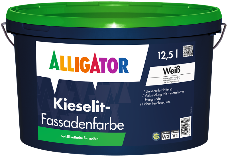 Sol-Silikatfarbe gem. DIN 18363 Abs. 2.4.1 für Außenanstriche mit erhöhtem Feuchteschutz. Durch Alkalität und Edelkreidung vor Algen- und Pilzbefall geschützt. Biozidfrei.