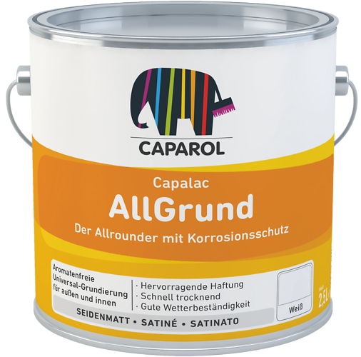 Alkydharz, Kunstharz, Titandioxid, Silikate, Calciumcarbonat, mineralische Pigmente / Füllstoffe, Zinkphosphat, Aliphaten, Additive