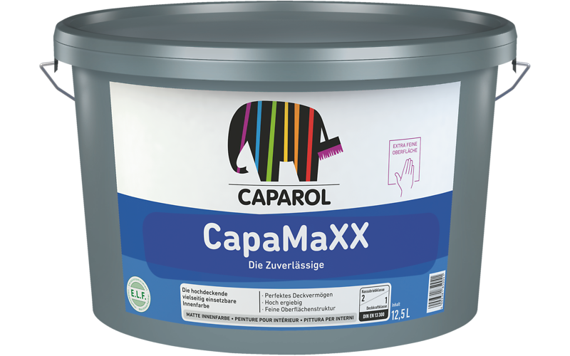 Bei CapaMaXX handelt es sich um eine stumpfmatte, strapazierfähige Kunststoffdispersionsfarbe die nach DIN EN 13 300 in der Nassabriebklasse 2 eingestuft ist. Aufgrund dieser Eigenschaften gilt CapaMaXX als matte Latexfarbe und kann in Bereichen mit entsprechender Anforderung ohne Einschränkungen verwendet werden.