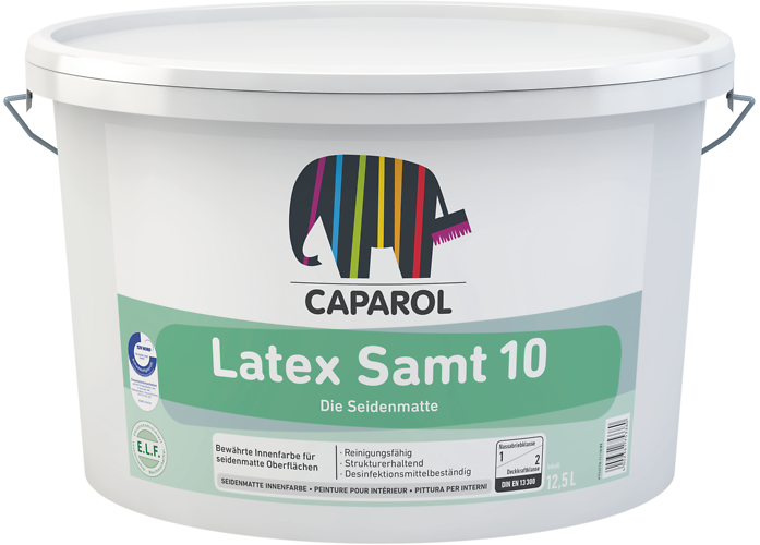 Ein satter, gleichmäßiger Anstrich mit Latex Samt 10, mit maximal 5 % Wasser verdünnt.