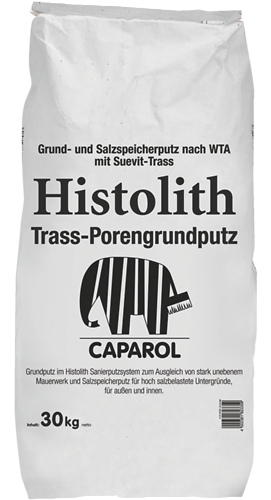 Das Histolith® Trass-Sanierputzsystem enthält mineralische Bindemittel nach DIN EN 197-1 (Zement, Suevit-Trass) und DIN EN 459-1 (Kalk) sowie mineralische Zuschläge nach DIN EN 13139. Die Anforderungen des WTA-Merkblattes 2-9-04/D werden erfüllt.
