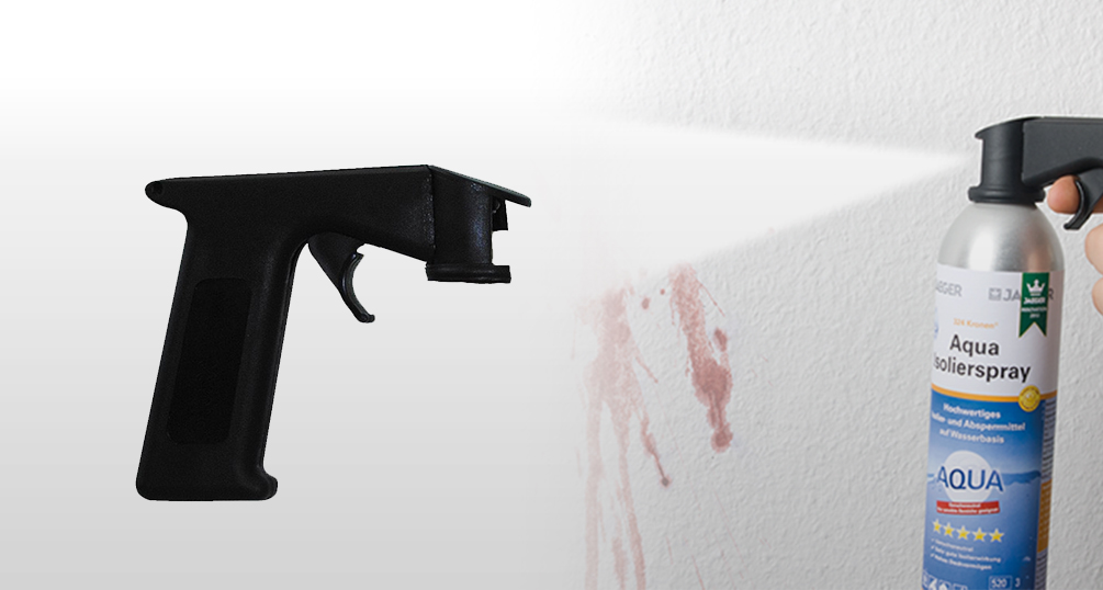 Für ein sauberes und effizientes Arbeiten mit sämtlichen Jaeger-Spraydosen, außer den Markiersprays 753, 756 und 761. Die Sprühhilfe ermöglicht eine professionelle Handhabung, ähnlich einer Spritzpistole. Zum komfortablen Lackieren auch großer Flächen und schwer zugänglicher Stellen.
