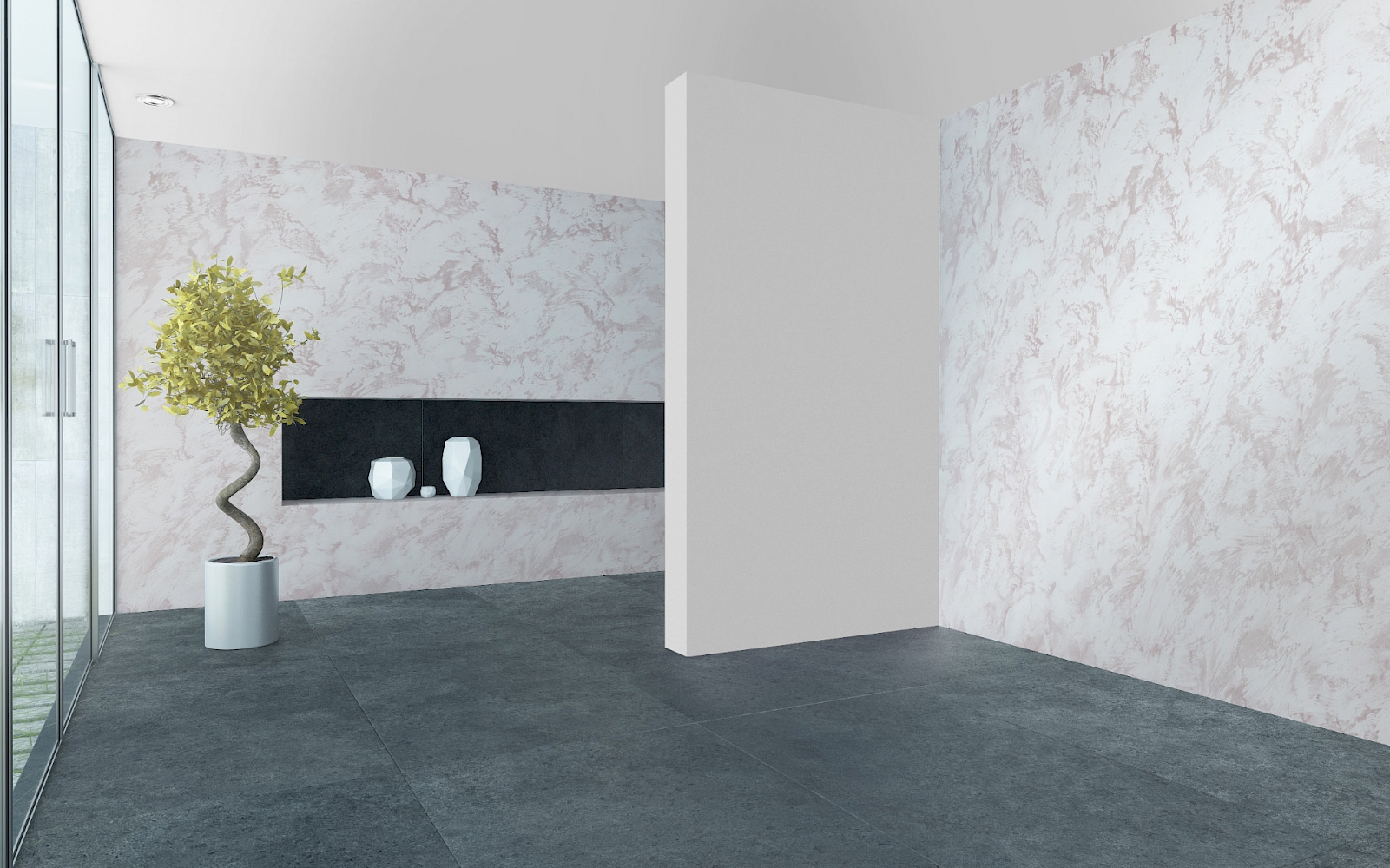 Moderne Oberflächengestaltung mit strukturiertem, edlem Perlmutteffekt. Für mineralische Untergründe, Dispersionsfarben und ähnliche Oberflächen.