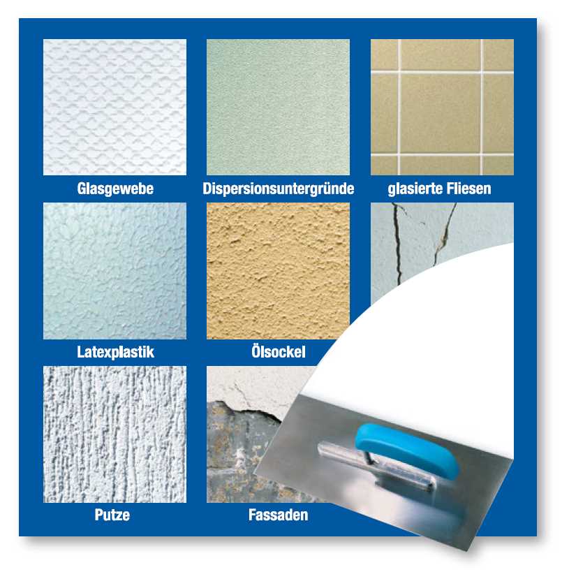 - perfekte Haftung auf Fliesen, Ölsockeln und nicht saugenden Untergründen